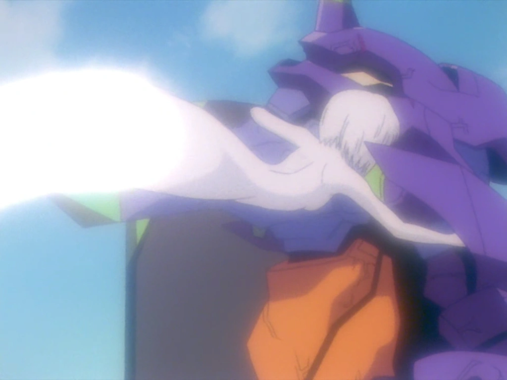 - pour se défendre contre Armisael, Shinji Ikari l'attaque avec son Progressive Knife. L'Ange hurle et commence à fusionner avec le pilote en faisant apparaître des têtes de Rei sur sa main. Armisael prend également la forme de Rei et élance l'Unité-01.