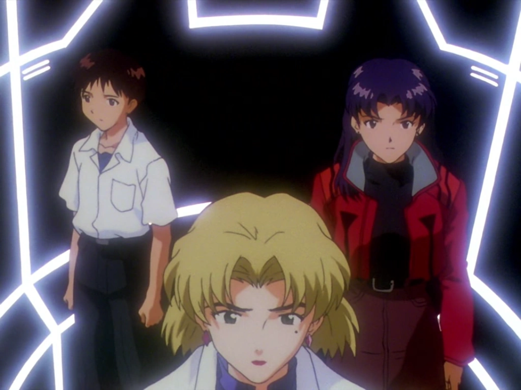 Misato menace Ritsuko pour qu'elle révèle les secrets de la NERV. La scientifique les conduit au Terminal Dogma où elle leur fait découvrir une ancienne chambre d'hôpital ayant servi de lieu de vie pour Rei, ainsi qu'une immense pièce remplie de cadavre de Prototypes Ratés d'Evangelion. Enfin, Ritsuko dévoile la véritable nature de Rei en leur montrant le réservoir où plusieurs clones de la jeune fille sont conservés. Elle décide ensuite de détruire les corps pour assouvir sa vengeance envers Gendō.