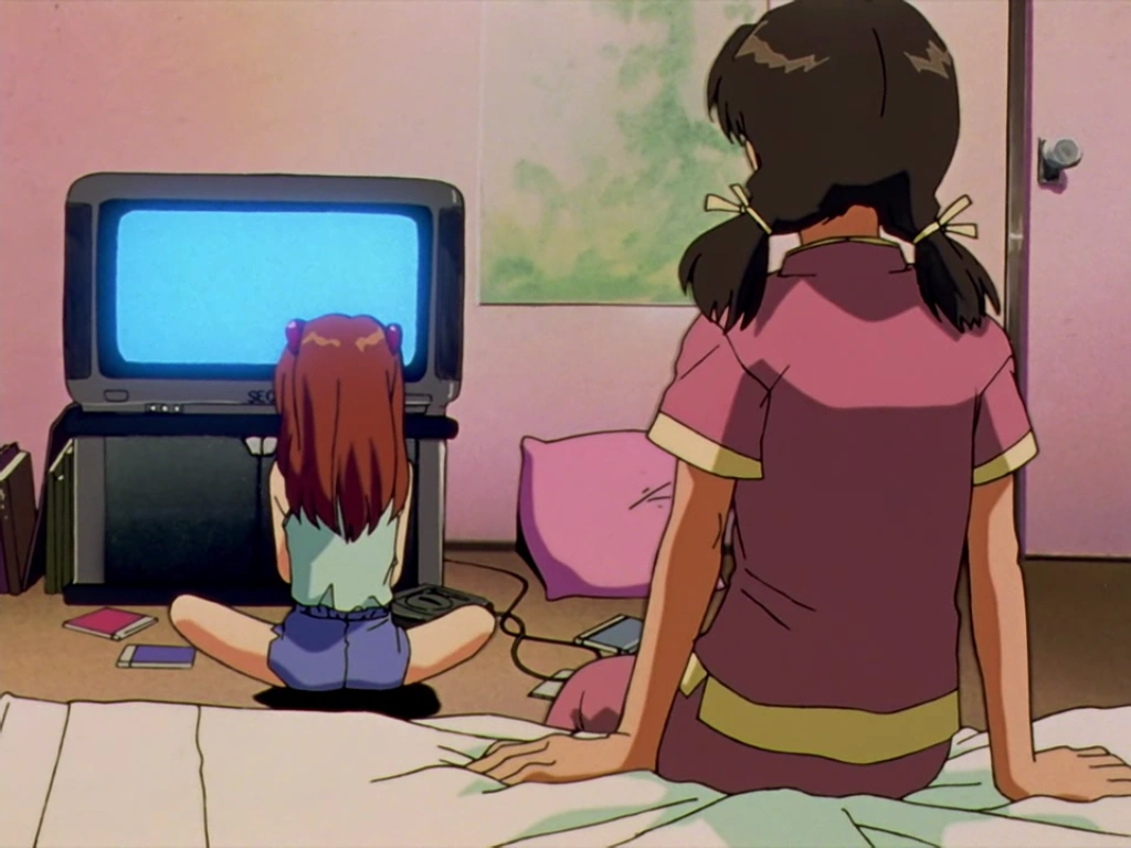 - Chez Hikari, Asuka joue sur une Sega Saturn. Sega détient à cette époque les droits d'exploitation vidéoludique de la franchise Evangelion et finance la production de la série.