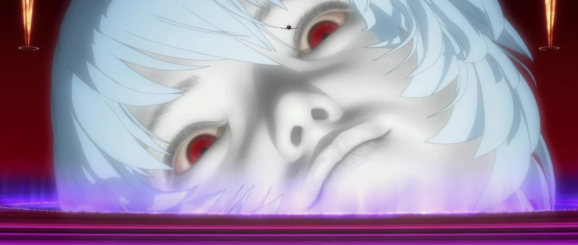 Après sa transformation, l'Evangelion Imaginary prend une apparence concrète en émergeant de l'Anti-Universe. Son masque tombe et révèle un visage féminin aux traits absurdes, évoquant ceux de Rei Ayanami. Sa taille prend des proportions titanesques et plusieurs de ses membres semblent disparaître. Ses mains se retrouvent ainsi "détachées" de ses épaules et sa tête séparée de son cou. De grandes ailes blanches apparaissent aussi dans son dos.