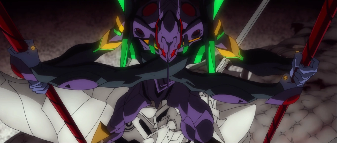 Avec l'aide de l'Unité-08γ, Shinji parvient à rattraper l'Unité-13 et monte à bord de l'Unité-01. Après avoir atteint l'Objet Golgotha, les deux Evas s'affrontent des décors différents, rappelant les lieux qu'ils ont connus, maniant respectivement la Lance de Longinus et la Lance de Cassius. Cependant, Shinji ne parvient pas à prendre le dessus dans ce combat qui semble ne jamais vouloir s'arrêter. Le garçon décide finalement de déposer son arme pour engager une discussion avec son père.