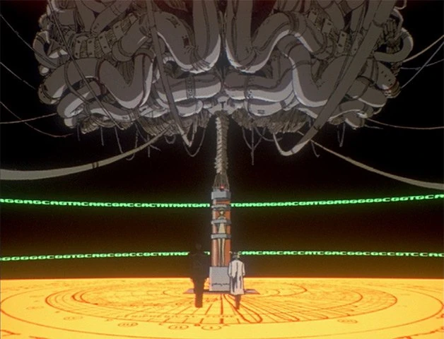 Расположение «мозга», «позвоночного столба» и резервуара с LCL в этой комнате, возможно, должно напоминать примитивную версию системы контактной капсулы Евангелиона. Мозгоподобный объект в металлической оболочке, возможно, является продуктом той же технологии, что и «мозг» в системе Magi.