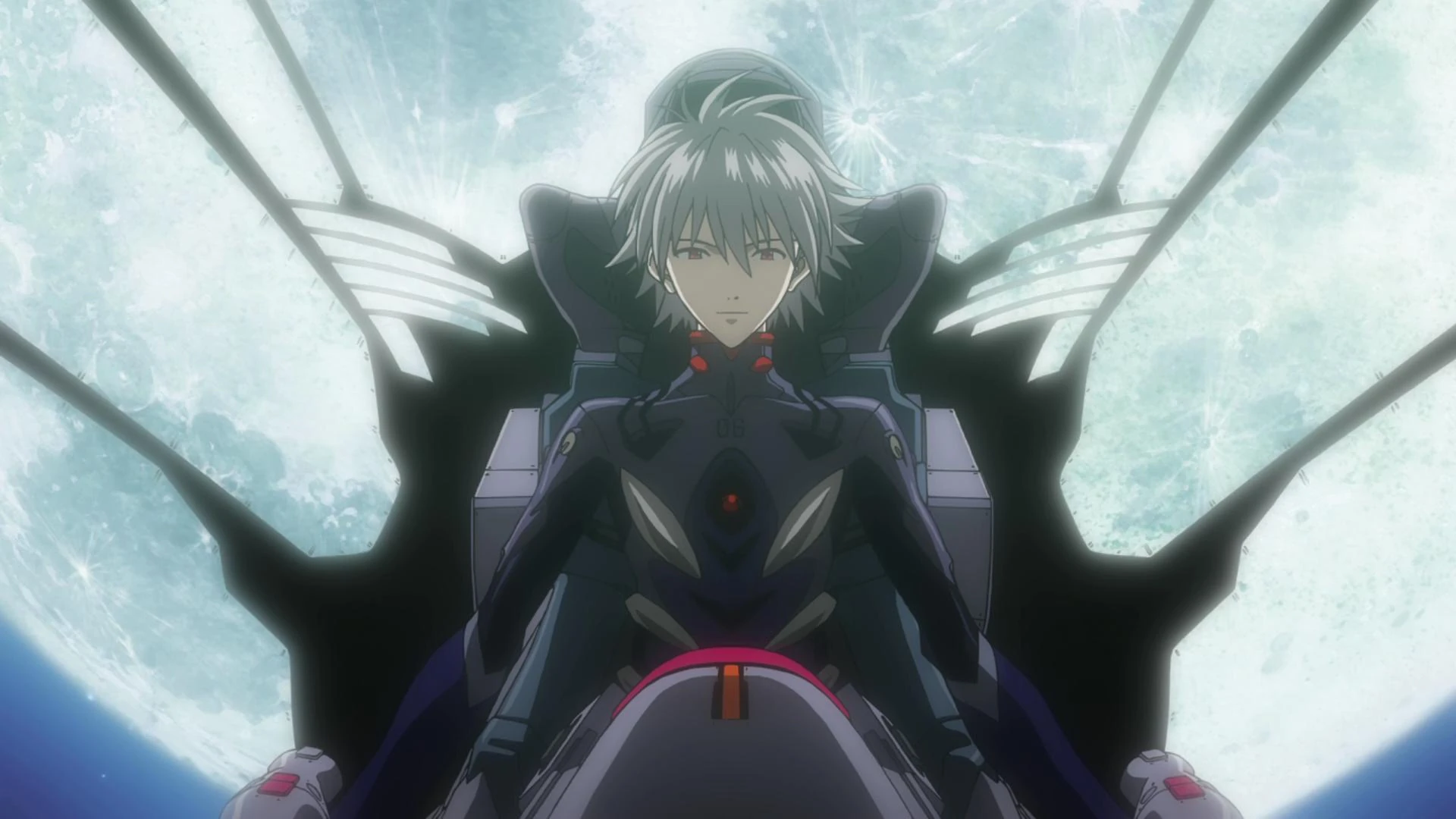 Появляется Кадзи и говорит Каору, что тот хотел достичь счастья только для себя, называя его «командующий Нагиса», сам Каору обращается к нему «Рё-тян», указывая на близкие неформальные отношения. Каору анализирует свою жизнь и благодаря Синдзи понимает, что через исполнение одной и той же роли он пытался сблизиться с Синдзи. Кадзи заявляет, что Каору эгоистично желал достичь личного счастья, сделав Синдзи счастливым, с чем Каору в итоге соглашается. Кадзи говорит Каору, что он выполнил свою роль более чем достаточно и что нужно позволить Синдзи уйти. Он предлагает провести отставку с ним и Мисато Кацураги, работая земледельцем. Каору соглашается и вместе с Кадзи покидает Синдзи чтобы жить как обычный человек.