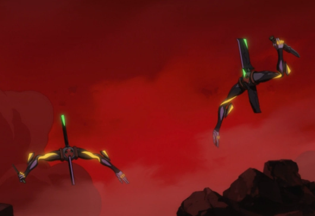 Эти Евы впервые встречаются с новой Евой-02α и Евой-08γ в штаб-квартире Nerv рядом с кратером, где находится Ева 13. Модули открывают атаку, направленную на голову новой Евы-02α, Ева-02 уклоняется от атаки, но не может уничтожить их из-за их поразительно высокой ловкости. В конце концов, Ева-08y уничтожает один из многих модулей, заставляя его взорваться в смеси желтого и розового света. Чтобы избежать боя и добраться до Евы 13, новый Евангелион-02α отделяет свой ускоритель, чтобы взорвать несколько модулей-Рук и спуститься дальше, в кратер штаба Nerv.