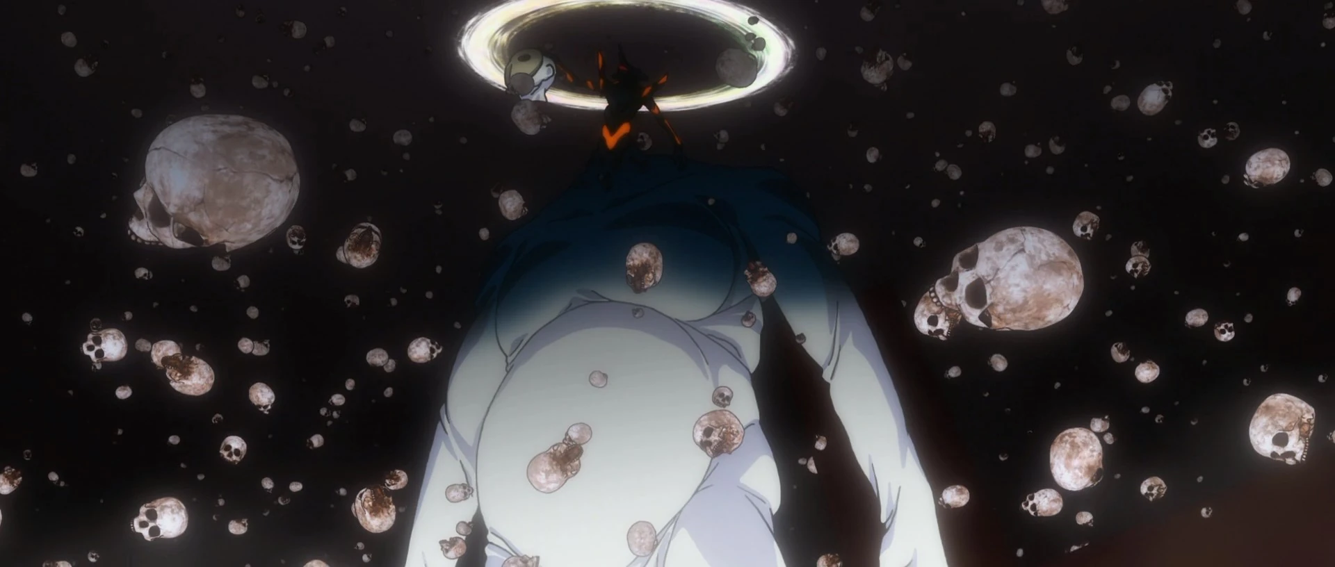 Во флэшбеке «Evangelion: 3.0 + 1.0» есть сцена, в которой Евангелион Mark.06 сливается с телом Лилит и держит её оторванную голову. Эта сцена выглядит как продолжение сцены, показанной в превью. Над головой Евы отчетливо виден нимб.