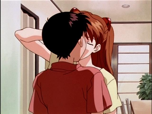 Asuka kissing Shinji in Episode 15.