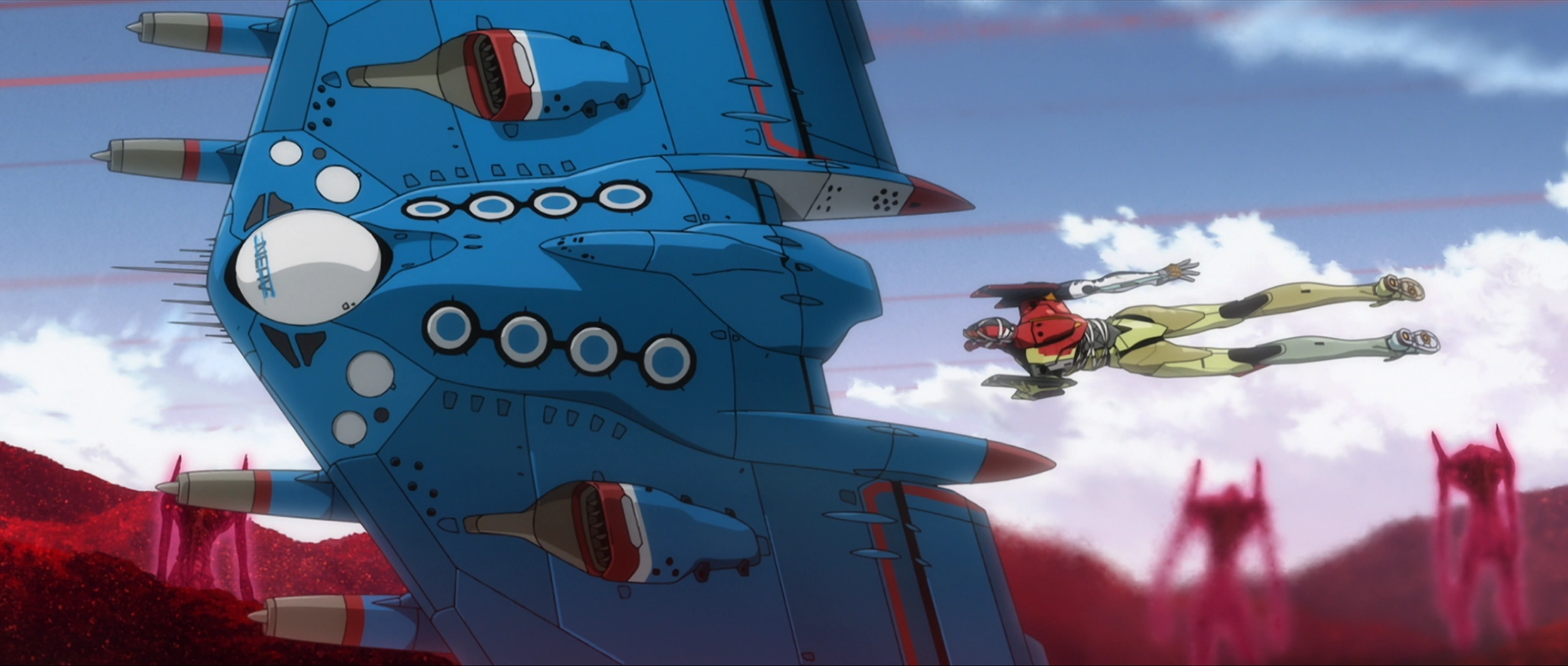 - Episode:09, Timestamp: 4:20, 2 of the aircraft deploy Unit-01 and Unit-02