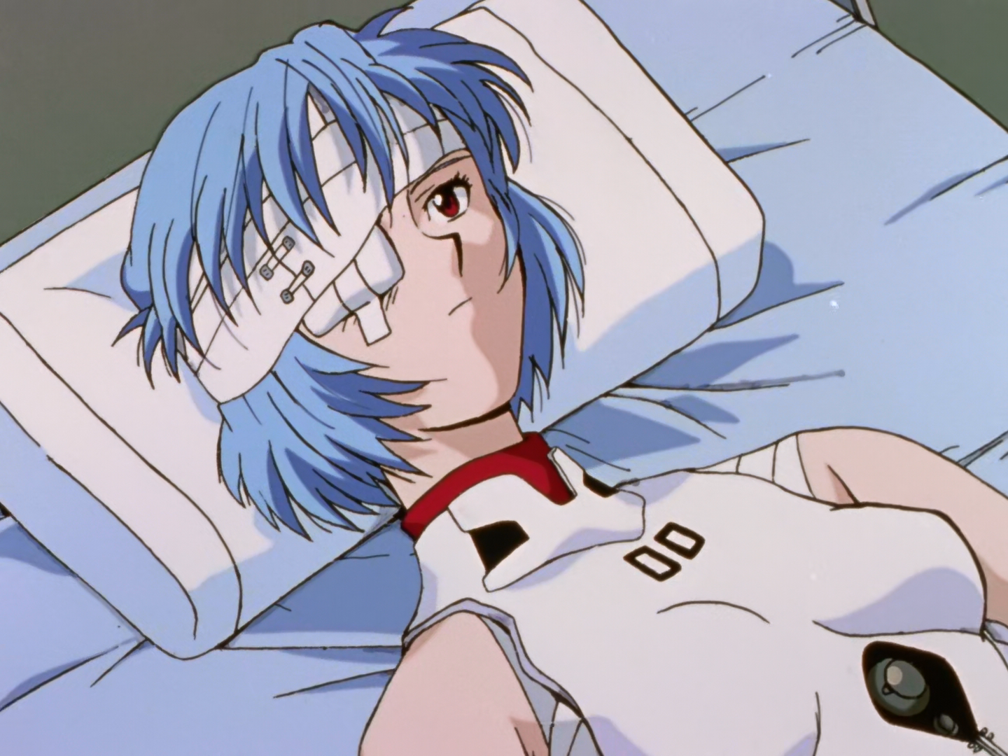 Gendo Ikari then appears before Shinji, telling him to pilot Unit-01 against the Angel or leave. Shinji refuses, despite Misato's attempts to convince him, and the heavily injured Rei Ayanami, whom Shinji seemingly saw in the street earlier, is rolled out on a stretcher to pilot in his stead. As she struggles to sit up, Sachiel reaches the city's edge and blasts a hole in the Geofront. The blast waves echo all the way to the cages, and a hanging light is knocked loose over Shinji. Before it can hit him, however, Unit-01 raises its hand and protects him despite its cockpit being empty. Shinji runs to the collapsed Rei, and upon seeing the extent of her injuries, convinces himself that he "mustn't run away." He agrees to pilot.
