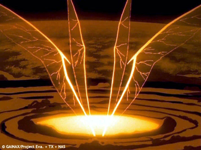 A massive Angel, Sahaquiel, appears in Earth's orbit, well beyond the reach of the Evangelions, and launching several N² bombs at it has no effect. The Angel attacks by dropping small pieces of itself onto Earth below, calibrating its aim: once it has zeroed in on Tokyo-3, the main body of Sahaquiel will fall to Earth in a massive kamikaze attack to destroy Tokyo-3. All three Evangelions are deployed at once in a race to reach the Angel before it hits, hold it back by projecting their own A.T. Fields, and destroy it.