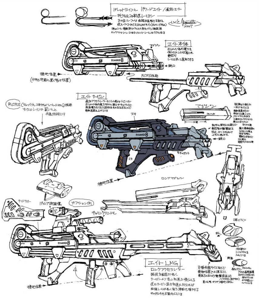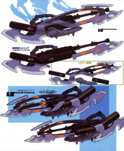- ↑ Steyr ACR Rifle Styer site with images of the firearm. Designed in 1987; only seven years before Evangelion was created. Apparently, the rifle uses flechette ammunition, which is basically steel darts instead of bullets.