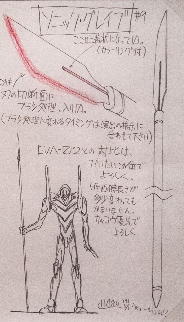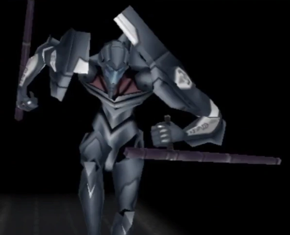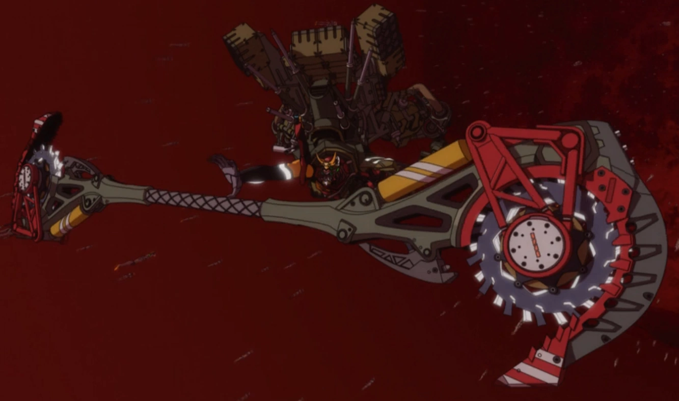 Appears in Evangelion: 3.0 You Can (Not) Redo, used by Unit-02'γ against Evangelion 13. It can separate into two swords. It slices through Evangelion 13's RS Hoppers with little effort but is unable to harm the Evangelion itself.