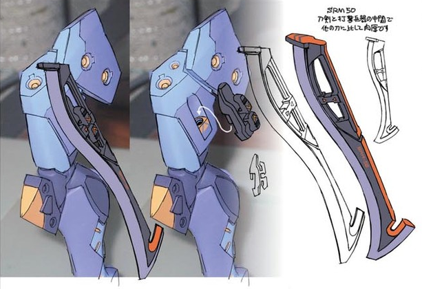 Appears[6] in Evangelion: 2.0 You Can (Not) Advance. It is used by Mari in Unit-02 when she confronts the Tenth Angel. It resembles a rifle with a blade instead of a barrel. It was designed by Ikuto Yamashita.