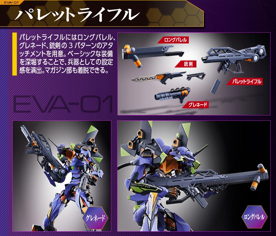 Unit-01 alongside standard Evangelion weaponry and equipments
