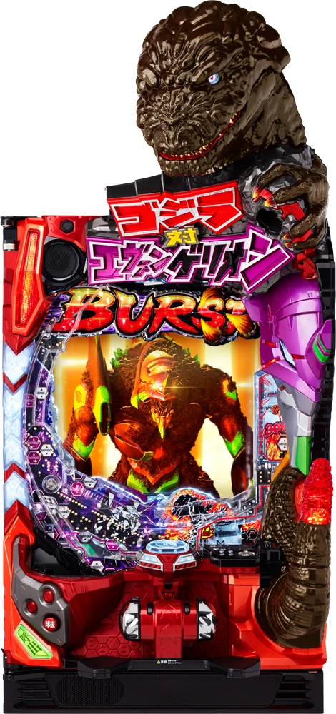 P Godzilla vs. Evangelion ~G Cell Awakening~ (Pゴジラ対エヴァンゲリオン〜G細胞覚醒〜, P Godzilla tai Evangelion ~G Saibou Kakusei~?) is a pachinko machine developed by Bisty, it was announced on 17 October 2022 [1]. This machine has an original story of a crossover between Rebuild of Evangelion and Godzilla[2]. The theme songs are "Teardrops of hope" by Yoko Takahashi[3] and Shuuketsu no Hate ni, "Shuuketsu no Toki ~Territory~" by Megumi Hayashibara[4].