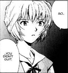 In the manga adaptation, Rei appears to respond more readily to human contact than her anime version. Shinji's interactions with her are implied as the main reason of her change; by the time of the battle with the Angel Armisael, it is strongly hinted that Rei is in love with Shinji. Shinji reciprocates this affection to some degree, but is unsure of what he feels for Rei and where their relationship is going. In volume 9, he acknowledges that the gap between them has been considerably reduced since they first met; still, he hopes that this gap can be reduced further. Her desire to be recognized as a person, rather than as a "doll," puts her in some awkward, even dangerous situations. At one point, Ritsuko tries to strangle her when she talks back to the doctor.